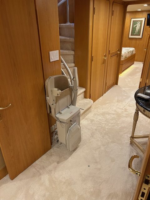 Installing a mobility solution on a luxury yacht presents a unique set of challenges. Unlike traditional residential settings, yachts demand a balance of functionality, space efficiency, and high-end aesthetics. This project required a stair lift installation that not only met the client’s mobility needs but also complemented the sophisticated design of the vessel.